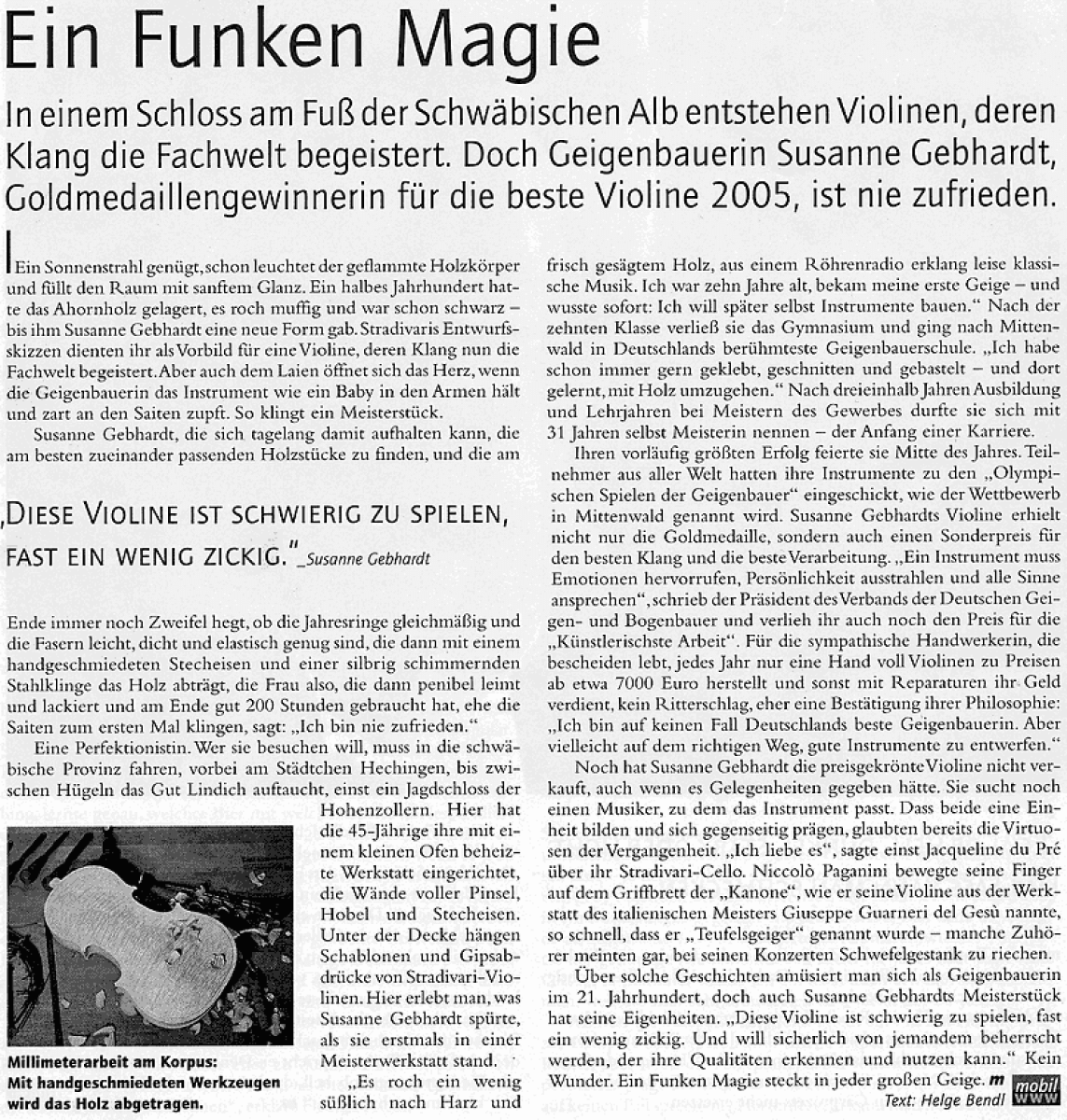 Ansichten einer Geige aus dem Jahr 2017